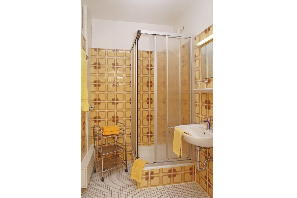 Im Duschbad befindet sich ein zusätzlicher Wäscheschrank.