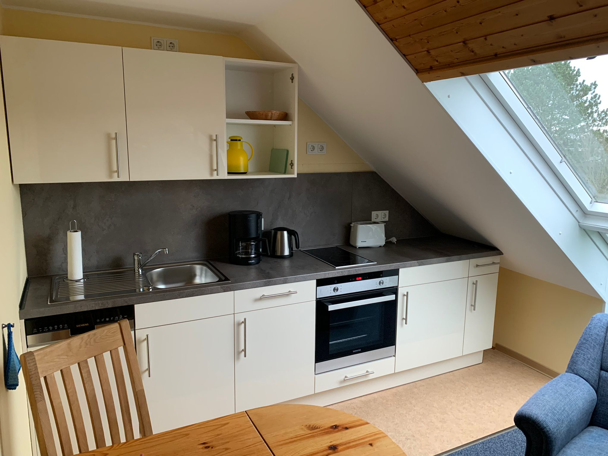 Dachgeschoss, ca. 30qm mit Panoramadachfenster und Blick Richtung Sahlenburg.